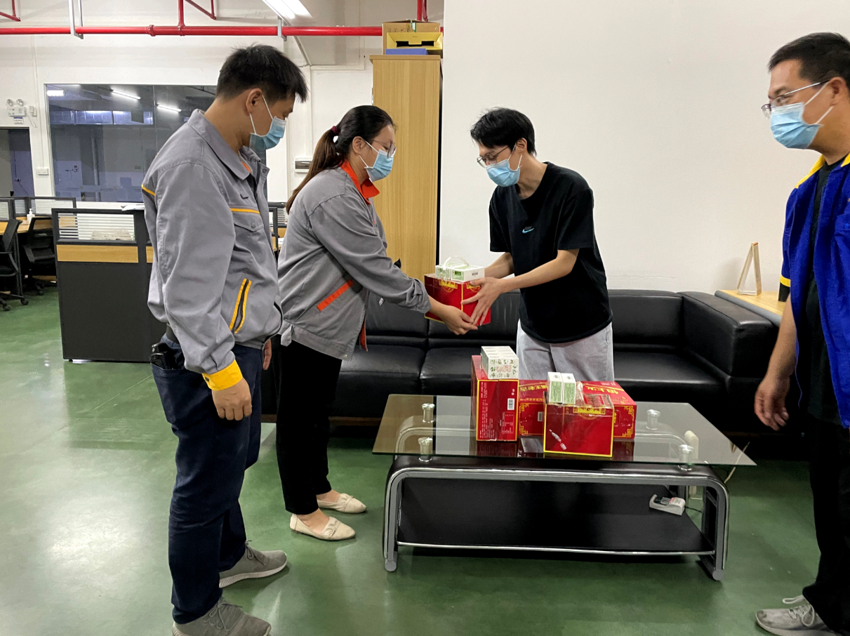 8月5日,由華潤佛山醫(yī)藥物流部總監(jiān)和工會主席帶隊,黨支部及工會委員隨行來到公司倉庫,為一線配送員、運輸員送上清涼飲料和藿香正氣口服液等防暑用品。還現(xiàn)場開展了安全生產(chǎn)、防暑降溫和中暑應急知識宣傳教育,并叮囑他們要做好防暑降溫工作,確保身體健康和安全生產(chǎn)?!?