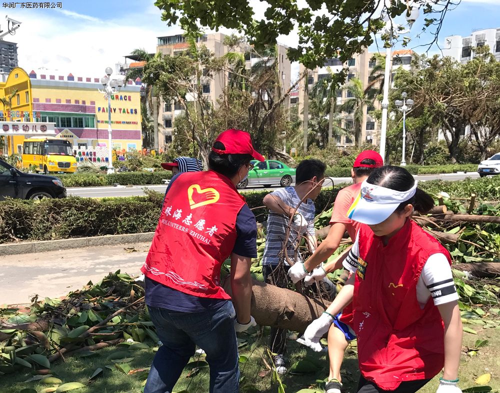 臺風(fēng)過后,珠海市多處環(huán)境遭受到自然災(zāi)害的破壞。華潤珠海醫(yī)藥的同事們利用周六休息時間自發(fā)組織了一支義工隊伍,參加珠海市交通指引、路面清理等志愿者服務(wù)。同事們不顧烈日曝曬,盡管大汗淋漓、口干舌燥依然不知疲倦地在烈日下忙碌著,只為能給這片經(jīng)受創(chuàng)傷的城市付出自己微薄的力量。
