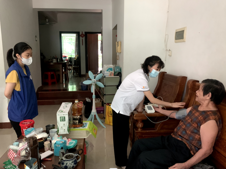 在活動(dòng)過(guò)程中,志愿者對(duì)受訪者噓寒問暖,耐心聆聽受訪者的傾訴,引導(dǎo)其以樂觀的心態(tài)面對(duì)生活,鼓勵(lì)他們積極做康復(fù),并為他們測(cè)量血壓,根據(jù)檢測(cè)結(jié)果結(jié)合所了解到的情況,向受訪人及其家人指導(dǎo)日常生活、飲食等注意事項(xiàng)及常備用藥,并為他們送上職工捐款購(gòu)買的大米、食用油和牛奶等慰問品,受訪者及其家人紛紛表示感謝。