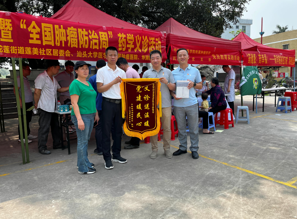 活動現(xiàn)場,工作人員通過向往來居民開展癌癥防控科普宣傳、普及抗癌健康知識,全面提升全社會癌癥防控意識;為居民測量血壓,并發(fā)放宣傳折頁普及藥品的正確使用方法、注意事項(xiàng);向群眾發(fā)放藿香正氣合劑,小柴胡顆粒、金嗓子喉片等日常便藥,叮囑用量、答疑解惑確保群眾用藥安全?;顒咏Y(jié)束,中共蓮美社區(qū)委員會為汕頭支部送上錦旗,感謝支部為社區(qū)居民健康做出的努力,更是激勵(lì)汕頭支部惠民活動再上新臺階。