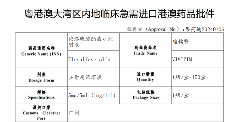 “唯銘贊”曾在中國(guó)大陸地區(qū)上市,但在今年5月,該藥品在中國(guó)內(nèi)地的進(jìn)口藥品注冊(cè)證到期,之后未在中國(guó)內(nèi)地銷售。患兒每周都需要靜脈注射該藥物,普通工薪家庭往返香港或者國(guó)外求藥并不現(xiàn)實(shí),不少患兒被迫停藥,家長(zhǎng)心急如焚。同樣著急的還有廣州醫(yī)科大學(xué)附屬婦女兒童醫(yī)療中心的臨床醫(yī)生,他們一邊與藥企溝通努力爭(zhēng)取,一邊研究各項(xiàng)政策想辦法尋找新的供藥途徑。“港澳藥械通”政策被認(rèn)為是最大的希望。