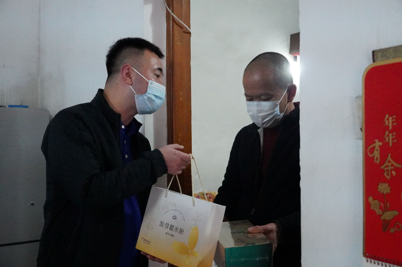 廣東德信行志愿者貼心地考慮到慢病患者的飲食顧忌,故專門挑選由24種優(yōu)質(zhì)天然原料制成的發(fā)芽糙米粉作為新年賀禮,遞送給慢病老人。禮品雖輕,但其中心意是沉甸甸的。志愿者期望發(fā)芽糙米粉能起到降血糖、修復(fù)腸道屏障的作用,幫助慢病患者在新年換個精神煥發(fā)的新面貌。呵護(hù)醫(yī)療養(yǎng)老機(jī)構(gòu)志愿者亦向慢病患者送上新年祝福與福春,寓意新的一年福氣臨門。